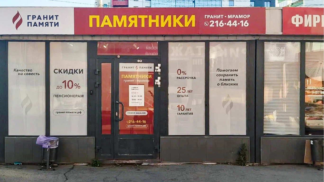 Компания «Гранит Памяти» более 26 лет занимается изготовлением надгробных памятников из натурального мрамора и гранита. Головной офис расположен в Тольятти, а с 2020 года мы активно развиваем сеть, открывая филиалы в разных городах. Сейчас наше присутствие охватывает уже 14 городов по всей России.