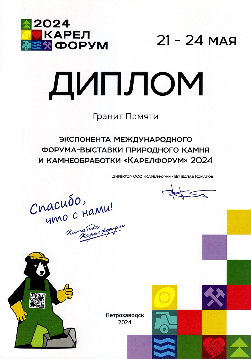 Ежегодные экспоненты профильных выставок в России «Некрополь», «Карелфорум», «Белый Тополь», «Ритуальные услуги. Камнеобработка» и в Белоруссии «Мемориал. Камнеобработка». Деятельность компании отмечена отраслевыми наградами: победители в номинации «медийность» в конкурсе «Золотая медаль Некрополь 2021», победители народного голосования на звание «Лучшая франшиза 2020», обладатели «Золотого скарпеля», номинанты на звание «Лицо Отрасли Некрополь 2020». Сотрудница компании признана «Самой обаятельной в каменной отрасли 2022».